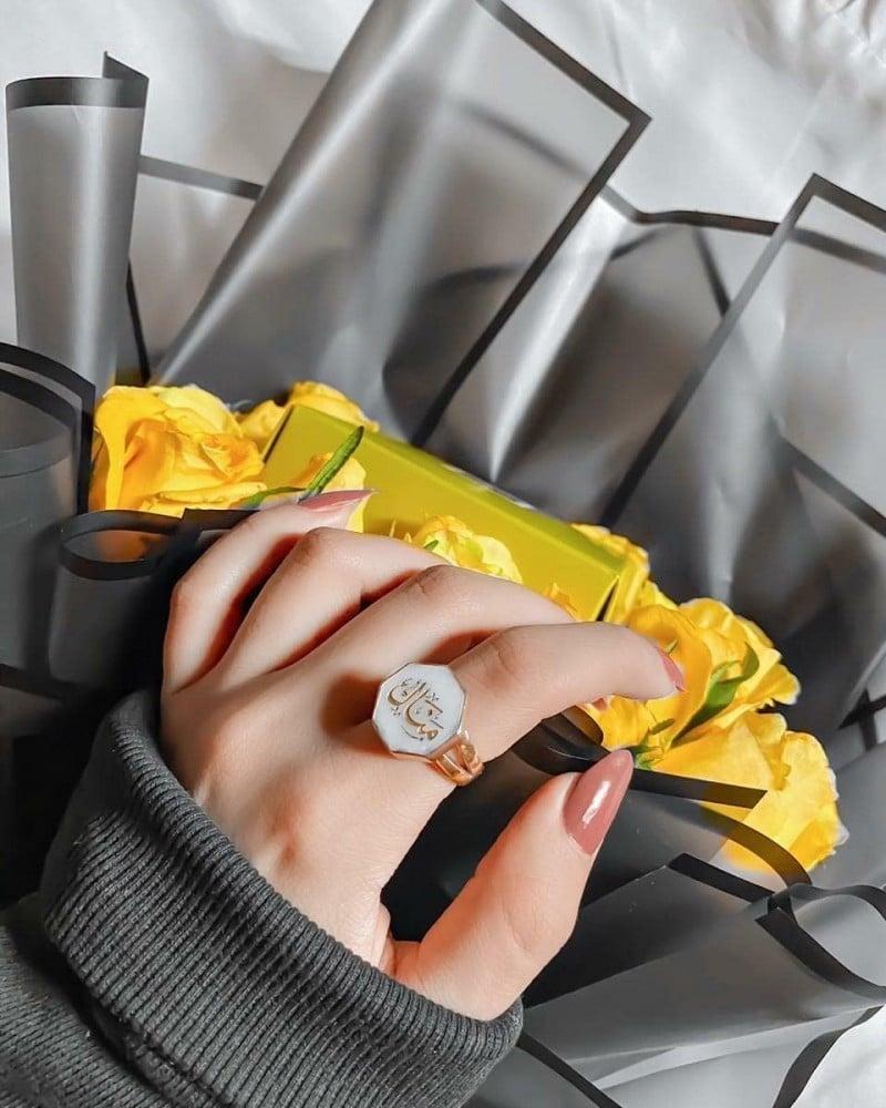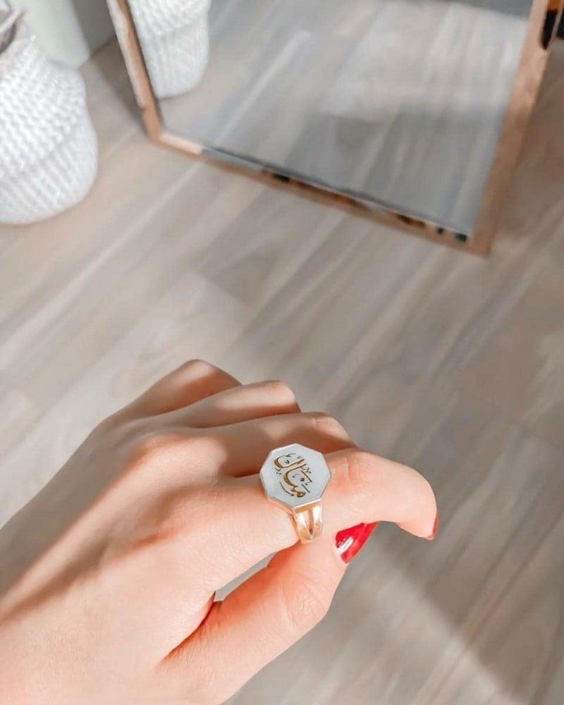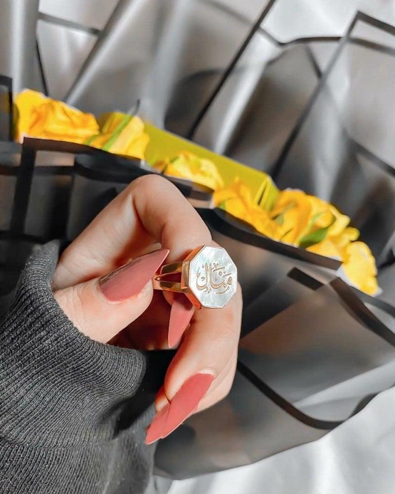 خاتم بالاسم من الصدف الطبيعي شكل سداسي